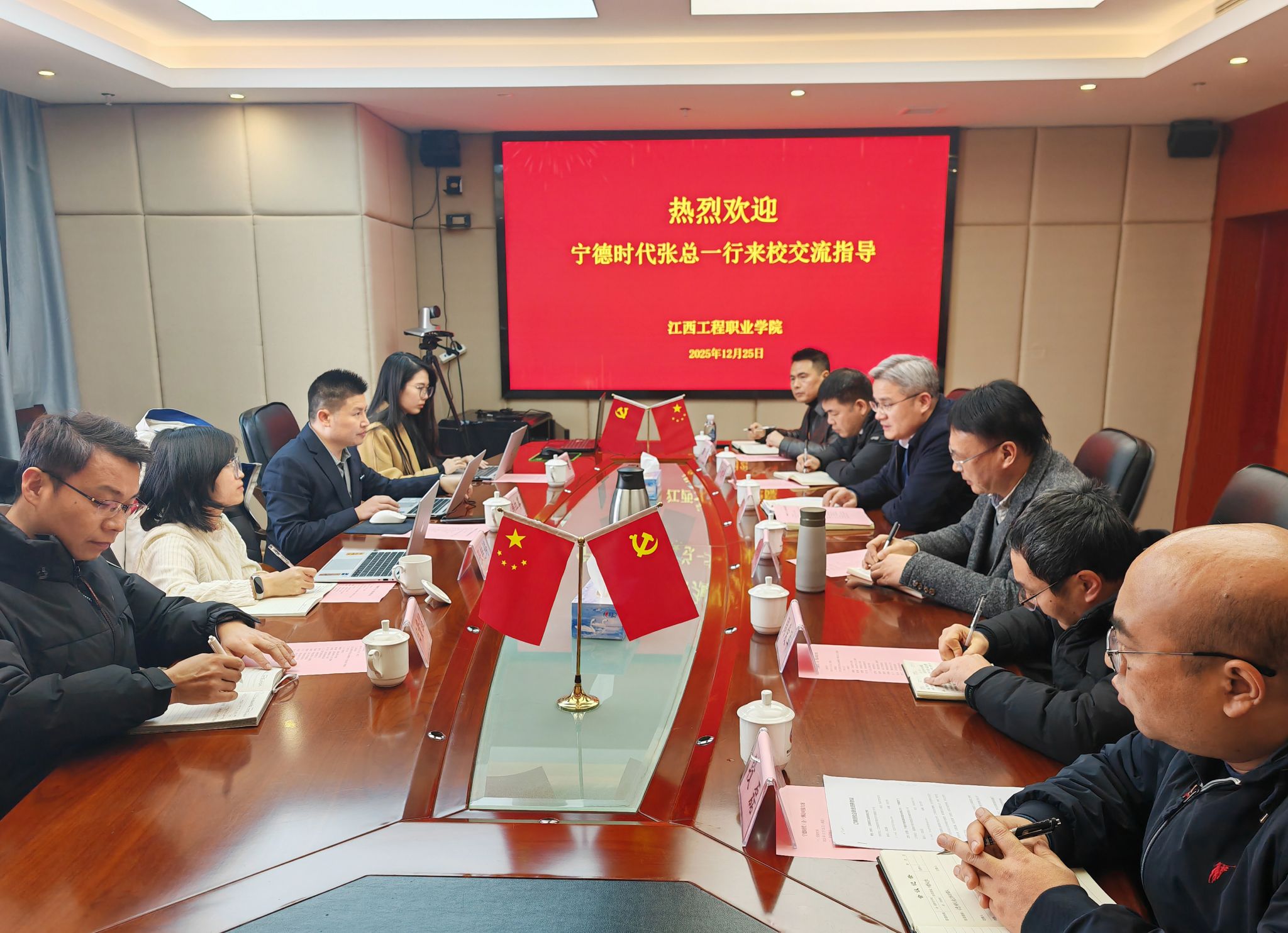 2025.12.2612月25日,宁德时代新能源科技股份有限公司一行来校交流,就深化校企合作事宜进行专题座谈。宁德时代总部运营中心经理张艳婷带队到访,随行人员有总部运营中心主任工程师韩红攀、宜春基地人力资源经理田贵煜、招聘主管陈慧等。学校党委书记花严红,党委委员、副校长吴跃萍及相关职能部门、二级学院负责人出席座谈会。座谈会上,张艳婷介绍了宁德时代在新能源领域的战略布局与校企协同育人规划。她表示,伴随企业产能的持续扩张与技术创新的加速推进,...